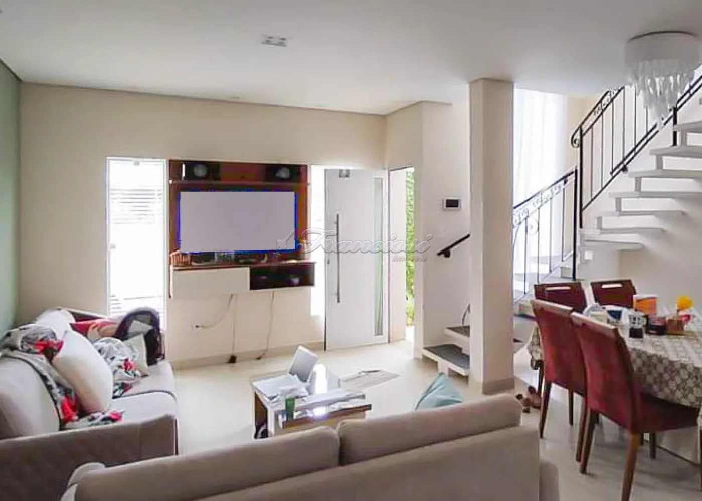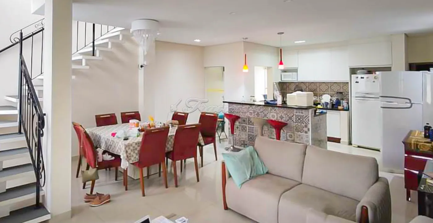 Sobrado com três dormitórios, sendo um deles uma suíte com closet, além de um banheiro social no andar superior. Na área térrea, há mais um dormitório, sala, cozinha com armários planejados, banheiro social, área gourmet com churrasqueira e forno de pizza, piscina e garagem para um veículo.