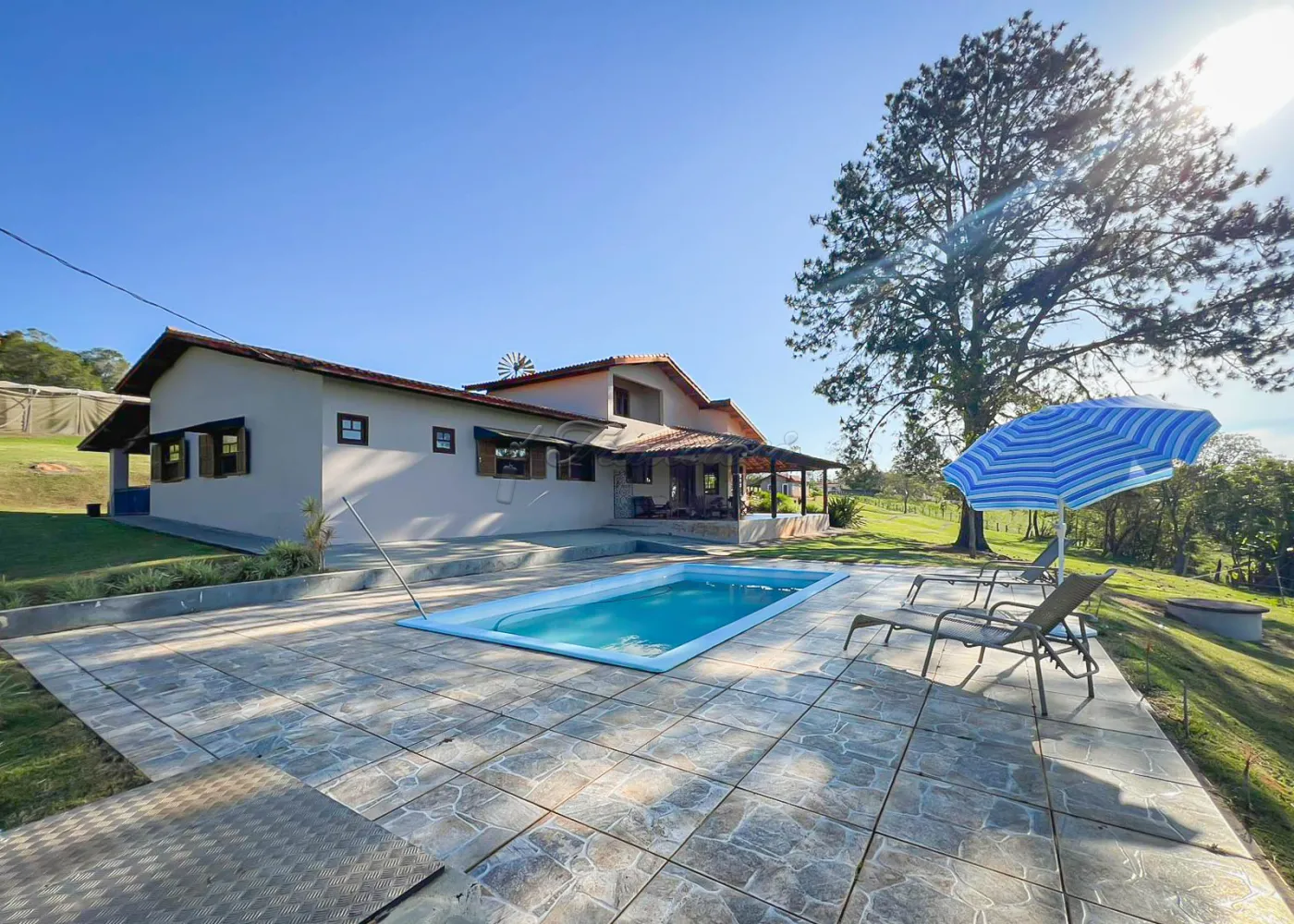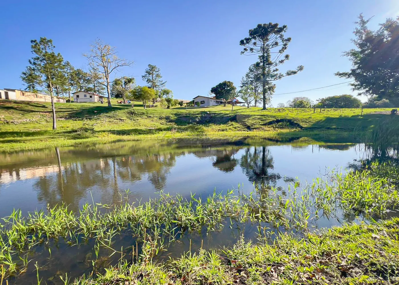 O imóvel dispõe ainda de 2 casas para caseiros (com 2 dormitórios, sala, cozinha e banheiro), 2 depósitos, canil, 2 poços caipiras e 1 poço semi-artesiano com catavento, além de 2 lagos de pesca com nascente própria.