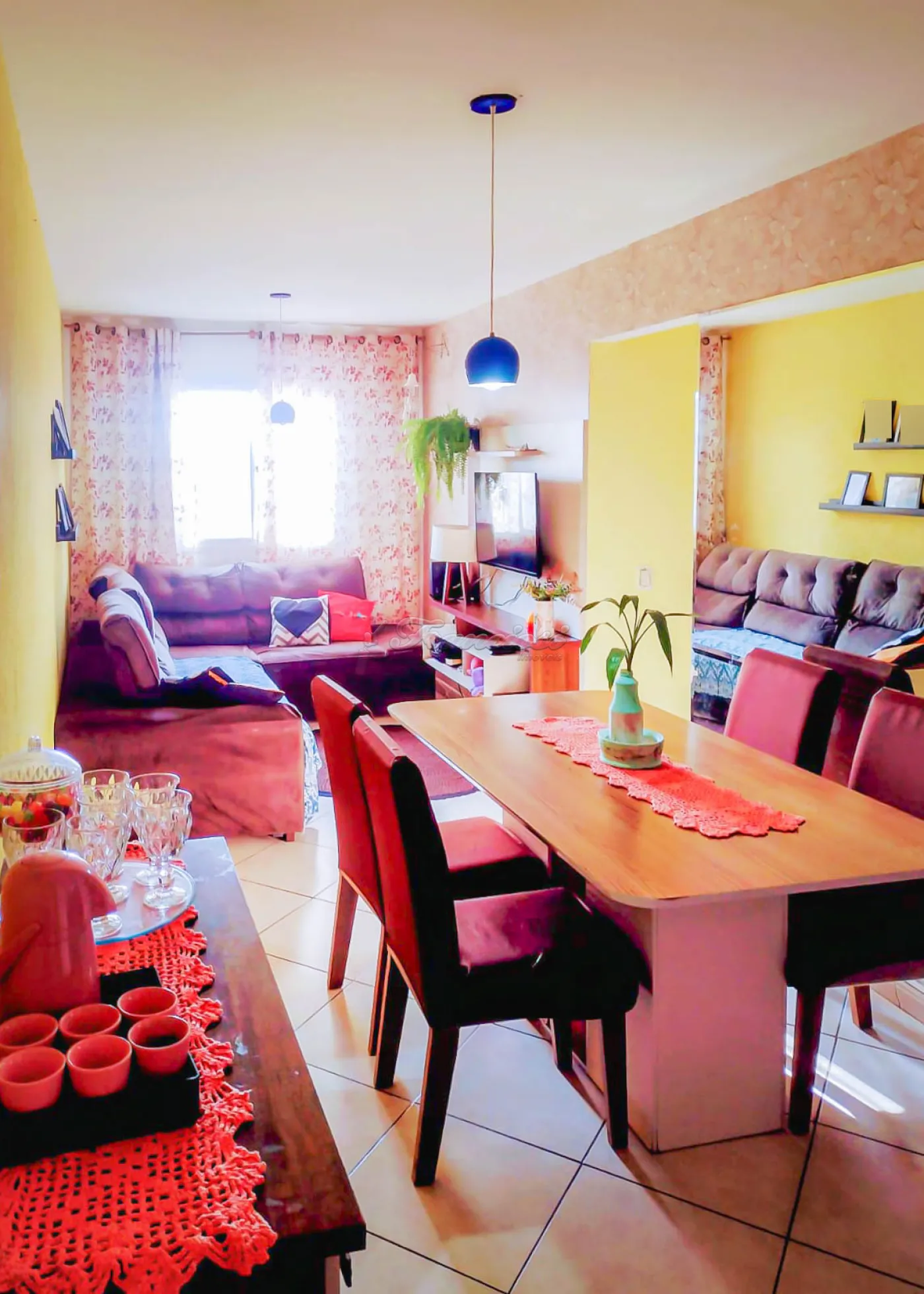 Apartamento com 3 dormitórios sendo 1 suíte, sala de tv, sala de jantar, cozinha, 1banheiro social, lavanderia e garagem para 1 carro.
