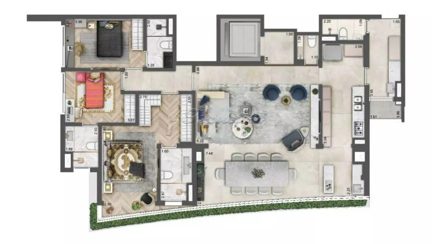 Excelente apartamento novo, com 151m², composto por 03 dormitórios, sendo 03 suítes, ampla sala de estar, cozinha americana, lavabo e espaçosa varanda. Conta ainda com área de serviço, dormitório e banheiro de empregada e 02 vagas de garagem.