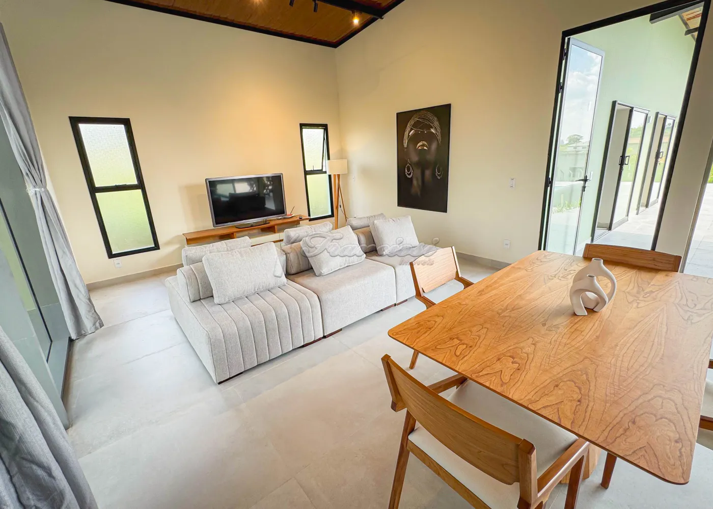 Imóvel localizado em loteamento fechado em Sarapuí, composto por 03 dormitórios, sala de estar, sala de jantar, cozinha, 03 banheiros sociais, lavanderia, varanda, área gourmet, piscina e garagem para 03 veículos.