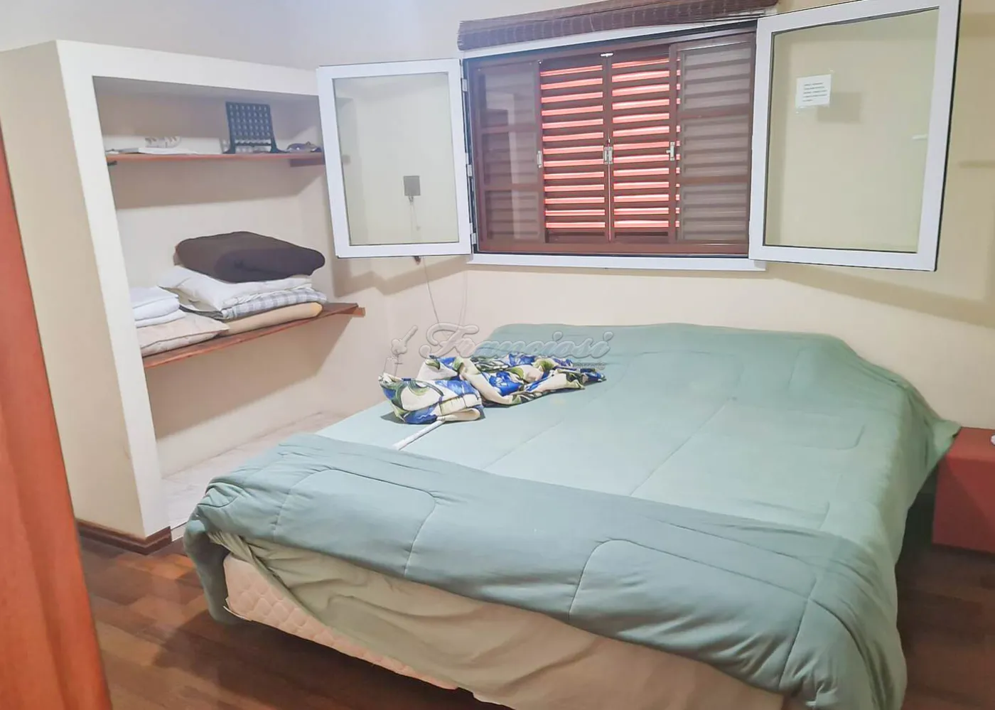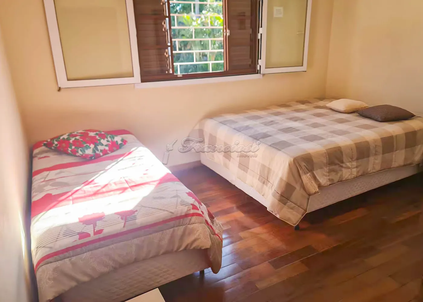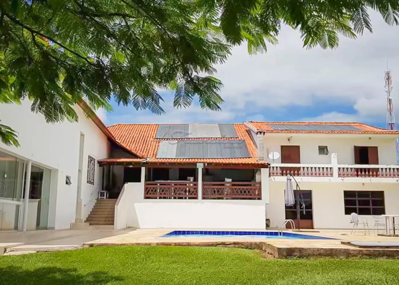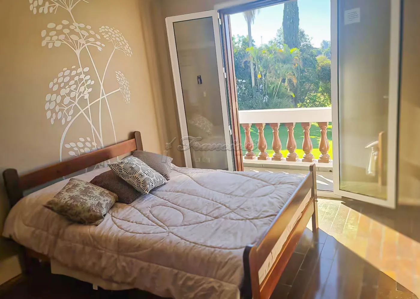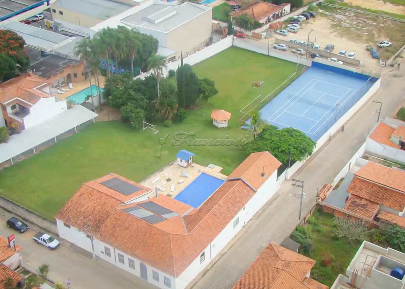 O imóvel conta com 09 dormitórios, sendo 06 suítes, 08 banheiros, sala de estar, cozinha e ampla área gourmet. Possui piscina aquecida, sauna úmida, SPA, jacuzzi para 08 pessoas, 02 campos de futebol gramados todo iluminado, quadra oficial de tênis cercada e iluminada, e salão de jogos equipado com mesa de snooker (taco de ouro), pebolim e tênis de mesa. Dispõe ainda de garagem coberta para até 10 veículos.