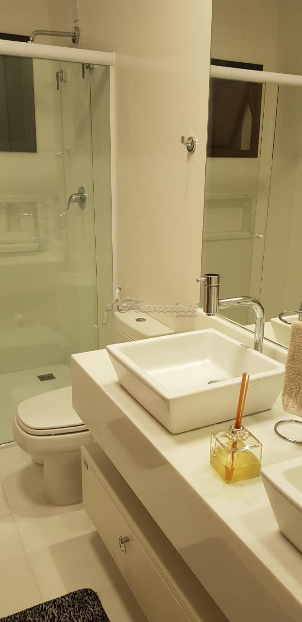 Casa em condomínio com 3 Suítes, sala de estar, cozinha, 1 banheiro social, lavabo e garagem para 4 carros.